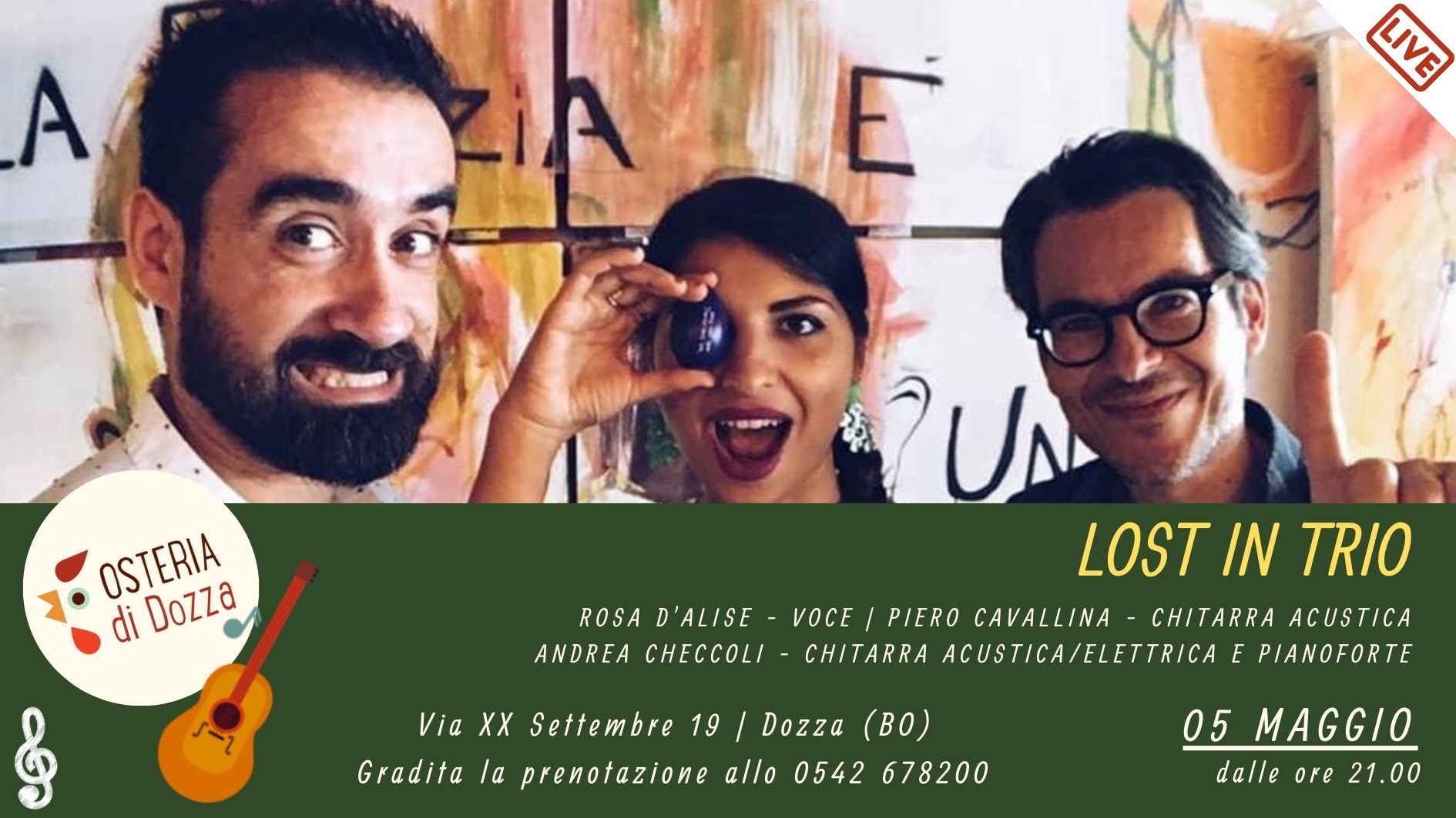 “Lost in Trio”, formazione acustica composta da Rosa D’Alise (voce), Piero Cavallina (chitarra) e Andrea Checcoli (chitarra e piano). Una suggestione musicale senza tempo né confini, attraverso il pop internazionale e la canzone d'autore italiana.